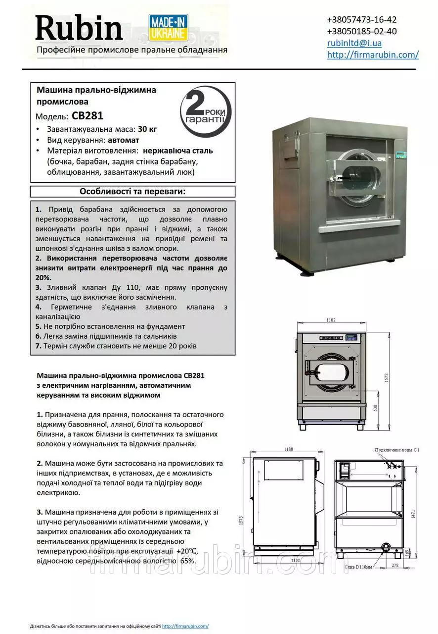 Промышленная стиральная машина СВ281 (подрессоренная, загрузка до 30 кг, с электрическим нагревом)